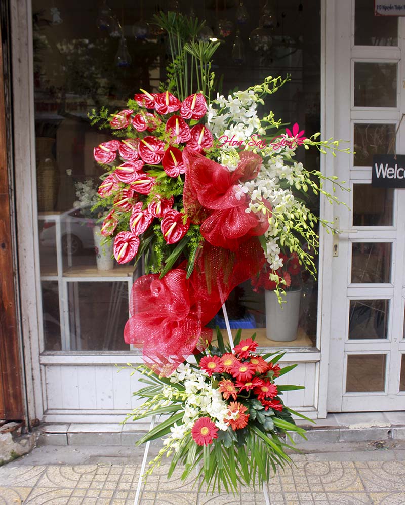 Vào ngày khai trương thì bên cạnh những lời chúc mừng thì việc dành tặng cho nhau kệ hoa chúc mừng chính là bí quyết giản đơn giúp gắn kết tình cảm chân thành giữa mọi người với nhau. Kệ hoa chính là sự kết hợp đầy ý nghĩa từ những đóa hoa hồng môn, hoa lan trắng và hoa đồng tiền. Bên cạnh đó còn có nhiều lá phụ khác để tạo cho món quà trở nên xinh đẹp và bắt mắt hơn.