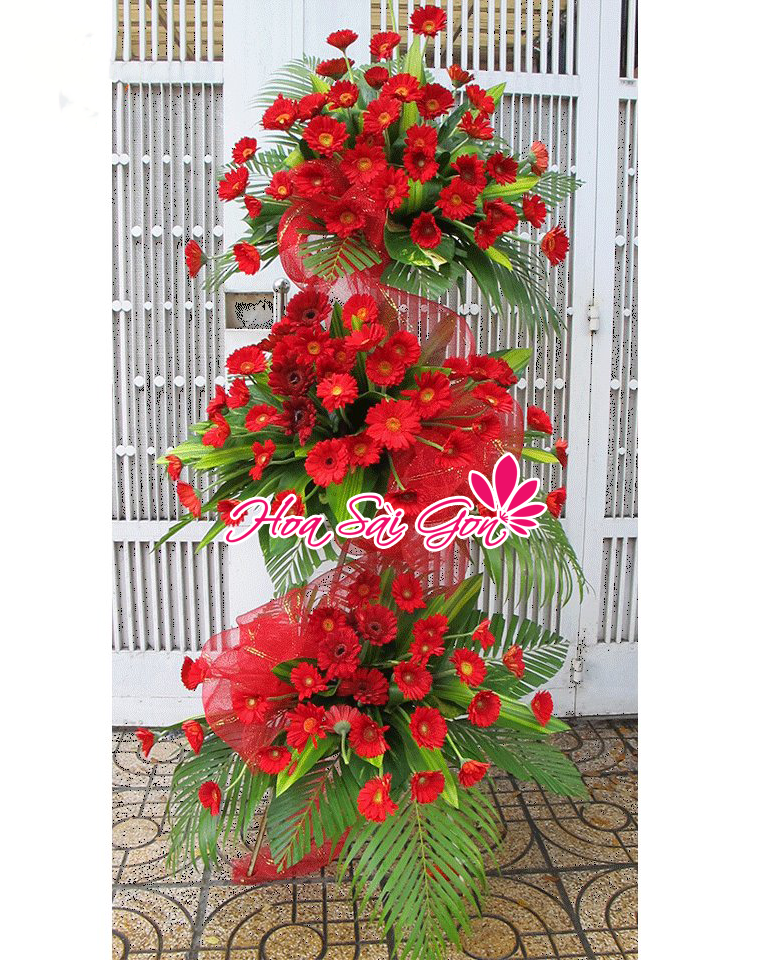 Món quà chính là sự kết hợp giữa 3 tầng hoa đồng tiền màu đỏ tươi thắm rực rỡ. Tặng hoa đồng tiền chính là lời chúc “Tiền vào như nước” đồng thời màu đỏ còn là màu của sự may mắn và thành công. Chắc chắn rằng khi nhận món quà này gia chủ sẽ cảm thấy vô cùng hài lòng vì thành ý mà bạn mang lại. Đặc biệt hoa đồng tiền còn là loài hoa tươi lâu rất thích hợp trong việc tặng vào dịp khai trương.