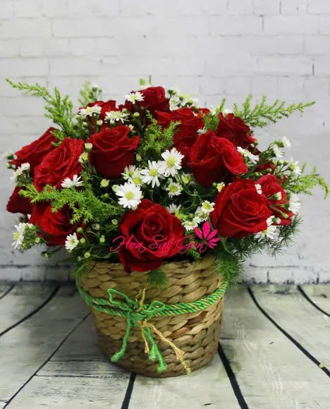 Giỏ hoa đáng yêu Chạm khẽ vào tim chính là sự kết hợp giữa 21 đóa hoa hồng đỏ cùng với những đóa thạch thảo trắng để tạo nên. Tất cả tạo nên thông điệp ngọt ngào cho ngày 20/10 thêm hạnh phúc!
