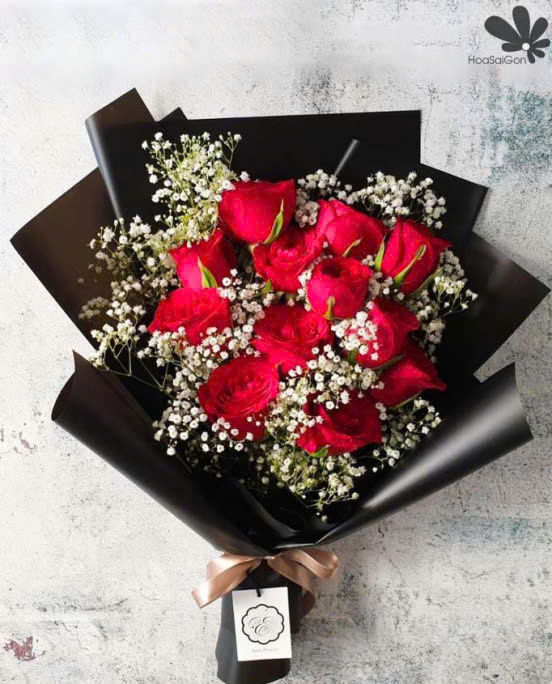 12 hồng đỏ kết hợp với baby trắng tuyệt đẹp.