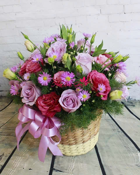 Giỏ hoa bao gồm rất nhiều những hoa lá khác nhau trong cuộc sống