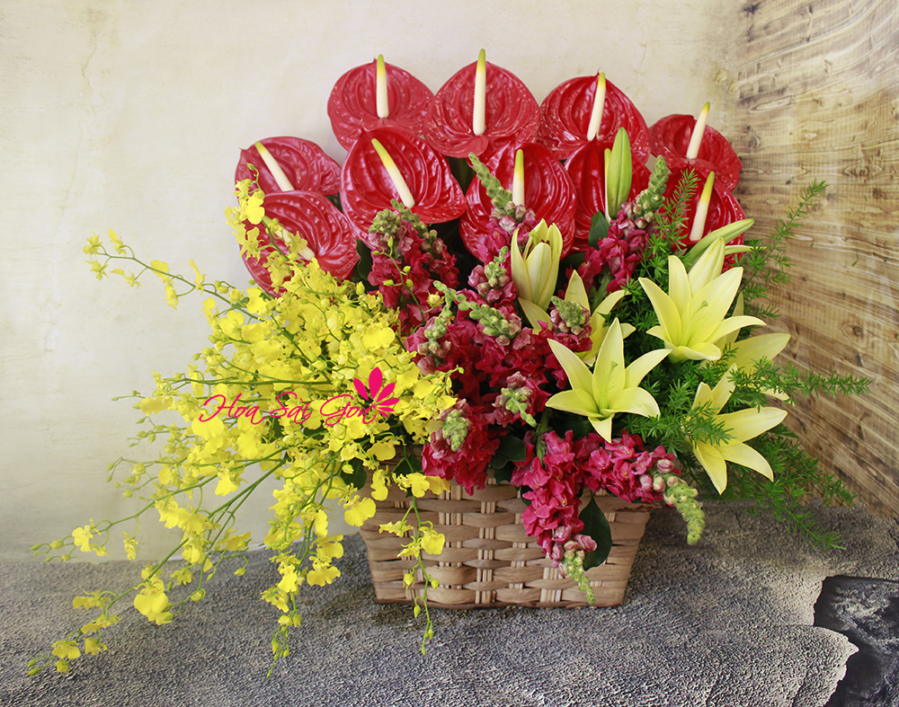 Và giỏ hoa Dấu ấn thời gian với sự kết hợp giữa những đóa hoa hồng môn, hoa ly vàng, hoa phi yến hồng và những cành lan vũ nữ vàng cũng chính là món quà sinh nhật tuyệt vời mà bạn dành tặng cho ai đó. Vẻ đẹp tươi tắn rạng rỡ từ những đóa hoa xinh đẹp sẽ giúp cho chủ nhân của buổi tiệc cảm thấy ấm áp và hạnh phúc hơn rất nhiều. Đồng thời với sự xuất hiện của giỏ hoa sinh nhật còn khiến cho không gian buổi tiệc thêm phần ấm cúng và hạnh phúc. Vì vậy hãy dành tặng Dấu ấn thời gian làm quà tặng sinh nhật cho những người thân yêu đẻ bày tỏ tình cảm từ sâu trong lòng mình bạn nhé!