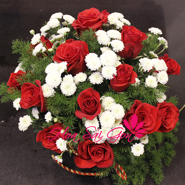 Lẵng hoa hồng đẹp tặng sinh nhật Dịu mát đó chính là sự kết hợp vô cùng hài hòa và dịu nhẹ giữa 15 đóa hoa hồng đỏ và những đóa hoa cúc Calimero trắng (có thể thay thế bằng những loại hoa phụ màu trắng khác). Đây chính là món quà sinh nhật ý nghĩa mà bạn có thể dành tặng cho những người thương yêu của mình.