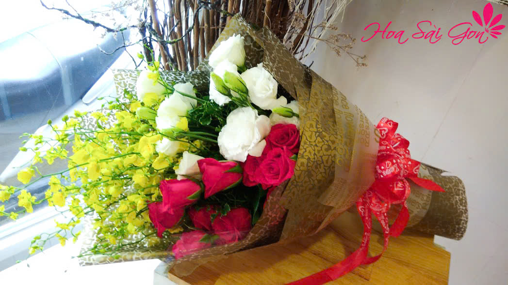 Bó hoa lan vũ nữ, hồng đỏ tươi thắm