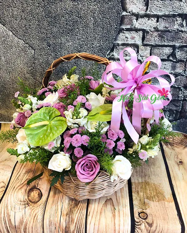 Giỏ hoa Ngây thơ vô cùng sang trọng và đẹp mắt