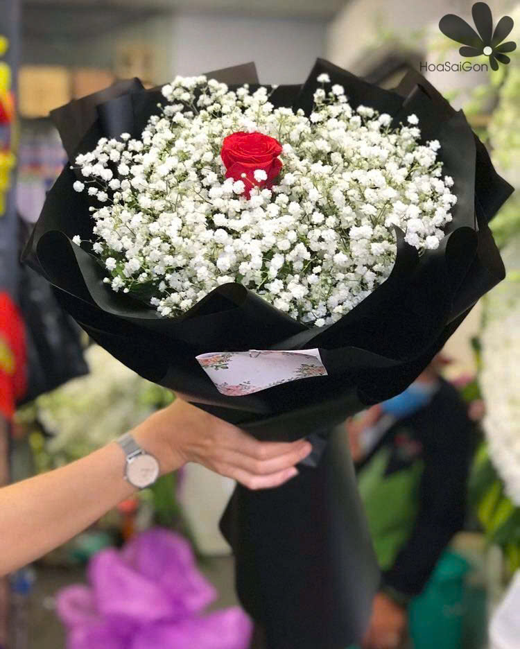 Bó hoa baby trắng và 1 bông hồng đỏ là tinh yêu này chỉ dành duy nhất em thôi.