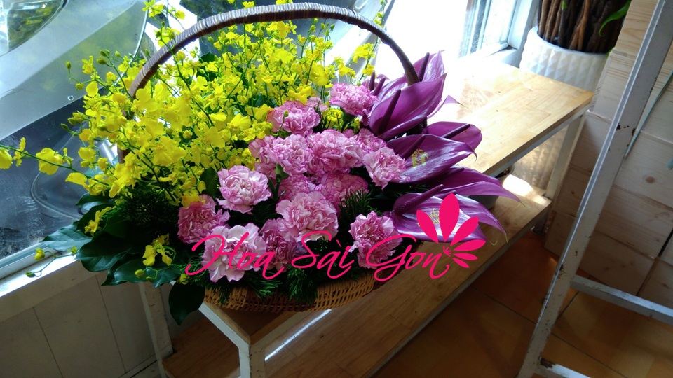 Giỏ hoa với sự kết hợp của rất nhiều loại hoa khác nhau