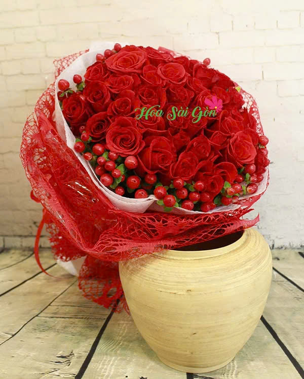 Bó hoa Trót yêu được Hoa Sài Gòn đặc biệt thiết kế để dành tặng cho những ai yêu nhau, bó hoa bao gồm 38 đóa hồng đỏ thắm kết hợp với hoa phụ chuỗi ngọc đỏ. Độc đáo nhất chính là phong cách tinh tế của giấy gói có màu sắc sang trọng làm tôn lên vẻ đẹp quyến rũ của những đóa hoa hồng đỏ xinh đẹp. Chắc chắn rằng khi nhận được bó hoa này, cô gái của bạn sẽ ngẩn ngơ và vỡ òa hạnh phúc!