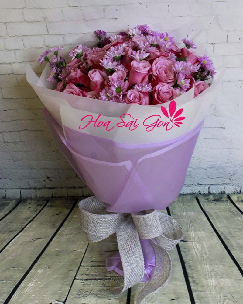 Để giữ lửa cho tình yêu, để giúp cho mối tình ấy luôn ngập tràn trong cảm xúc yêu thương chân thành thì việc trao tặng cho người mình yêu những bó hoa xinh đẹp là điều mà các chàng trai không được bỏ qua. Bó hoa Vùng trời bình yên chính là món quà thân thương tuyệt vời ra đời từ những cung bậc cảm xúc nhẹ nhàng, lãng mạn nhưng cũng đầy son sắc và thủy chung. Bó hoa chính là sự kết hợp giữa rất nhiều những đóa hoa hồng tím xinh tươi yêu kiều cùng với những đóa hoa cúc yêu thương. Tất cả tạo nên một bức tranh thiên nhiên ngọt ngào son sắc.