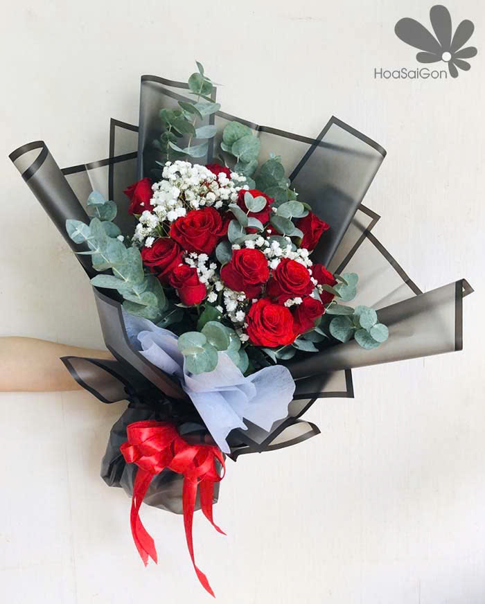 Bó hoa 15 hồng đỏ phối cùng baby trắng và lá bạc thật sang trọng. Hoa hồng đỏ quen thuộc vẫn mang ý nghĩa tình yêu sâu đậm, 1 tình yêu không phai.