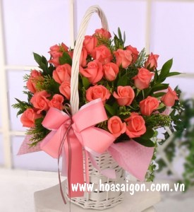 Giỏ hoa cắm theo dạng tròn tỏa ra như tình yêu của anh và em trọn vẹn, đầy đủ, "Anh tự hào khi có em bên cạnh". Đặc biệt, màu cam của những đóa hoa hồng cam là biểu tượng của một tình yêu ban sơ. Một tình yêu xuất phát từ một tình bạn thân thiết trong sáng luôn là thứ tình cảm thiêng liêng và trân trọng nhất, do đó tặng nàng một nụ hồng cánh cam sẽ thể hiện sự quan tâm và tình cảm chân thành của bạn đến nàng.
