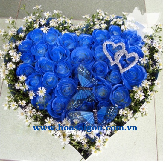 Màu xanh của hoa hồng không có sẵn trong tự nhiên, sự thật hoa hồng thiếu sắc tố tạo màu xanh. Tuy nhiên, Hoa Sài Gòn đã dùng công nghệ phun màu để biến những bông hoa hồng trắng thành màu xanh vĩnh cửu. Hoa hồng xanh dương được yêu thích bởi thông điệp ý nghĩa của nó. Màu xanh dương là màu của Trời và Biển, màu của sự yên bình và vĩnh hằng. Do vậy, hoa hồng xanh dương tượng trưng cho tình yêu bất diệt.