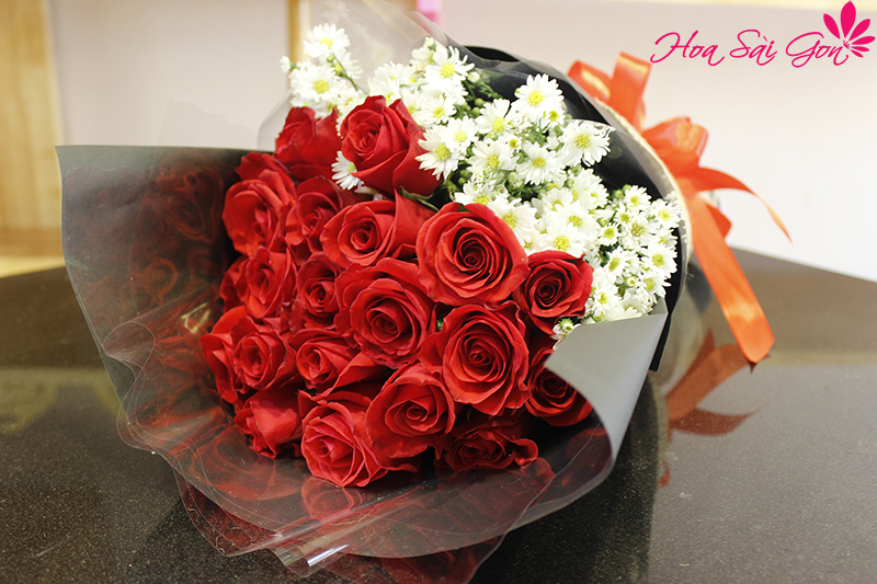 Bó hoa Nồng nàn chính là một trong những bó hoa tươi 14/2 ý nghĩa và tinh tế tạo nên dấu ấn đặc biệt đối với người nhận. Bó hoa lđược tuyển chọn từ 20 đóa hoa hồng đỏ tươi thắm kết hợp với những đóa hoa cúc trắng tinh khôi đặc biệt được gói theo phong cách Tây Âu sang trọng tạo nên nét đặc trưng riêng.