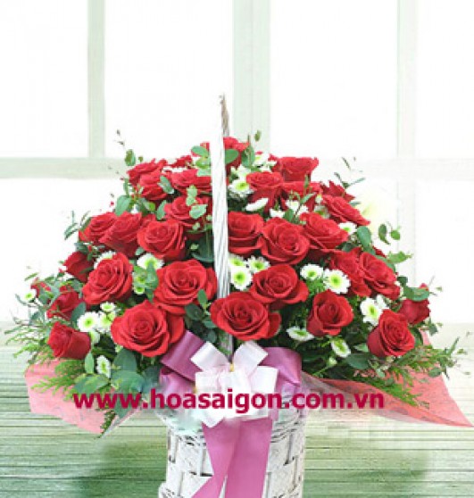 Giỏ hoa "Tình yêu vĩnh cửu - TY121" gồm 40 hoa hồng đỏ kết thành giỏ hoa. Hoa tình yêu TY121 được cắm theo phong cách tự nhiên. Giỏ hoa này thích hợp với những người lớn tuổi, những người đã qua tuổi teen, bạn có thể dành tặng cho vợ mình trong những ngày đặc biệt để bày tỏ lòng yêu thương và lời cảm ơn dành cho sự hi sinh của người phụ nữ.