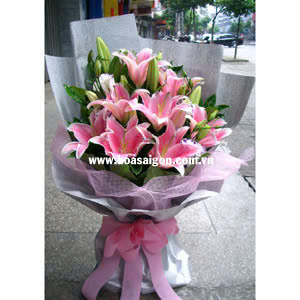 Hoa tươi 20/11 - HB78 gồm 12 lyly hồng nở và búp, cùng hoa cát tường
