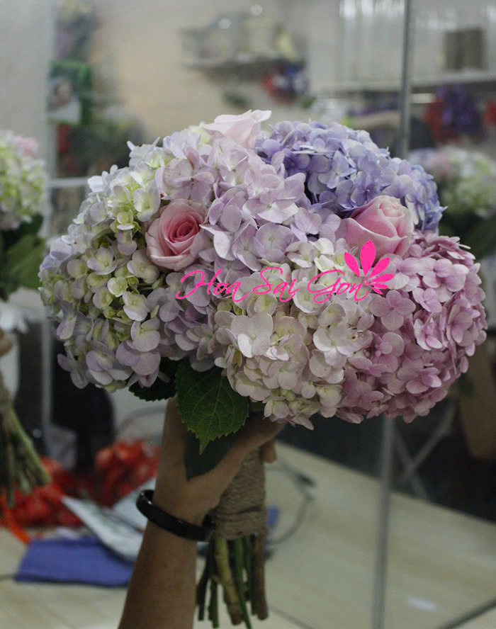 Bó hoa tươi 20/10 - PT38 là sự kết hợp dịu dàng, tinh tế màu hồng hồng tím tím của cẩm tú cầu, kết hợp với hoa hồng tượng trưng cho tình yêu lãng mạn.