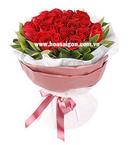 Bó hoa gồm 22 hoa hồng đỏ thắm xinh xắn.