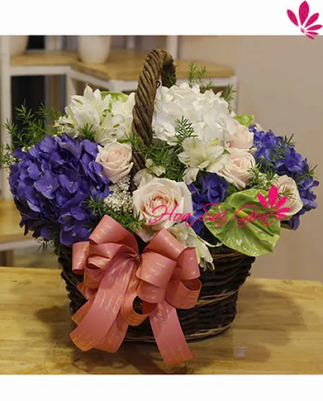 Giỏ hoa cẩm tú cầu lịch lãm