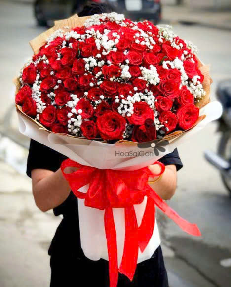 Bó hoa là sự kết hợp 111 hoa hồng đỏ với baby trắng, biểu trưng cho tình yêu bất diệt, mãi không lìa xa. Đời đời kiếp kiếp ta mãi thuộc về nhau.
