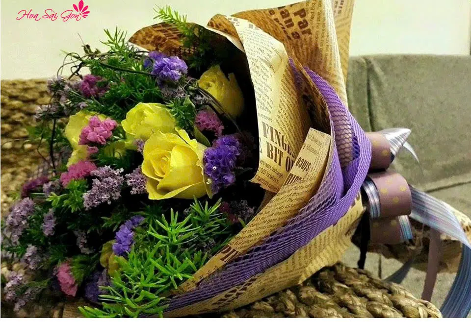 Là sự kết hợp đầy tính nghệ thuật của 5 đóa hoa hồng vàng tươi tắn rạng ngời cùng với những cành hoa salem tím thủy chung, cành hoa salem hồng dịu nhẹ và những cành hoa phụ kiện khác. Tất cả tạo nên một phong cách nghệ thuật thiên nhiên tinh tế và sang trọng. Tặng bó hoa Yêu thương đong đầy cho người thân yêu chính là sự gửi gắm tình cảm về tình yêu trọn vẹn và chân thành nhất.