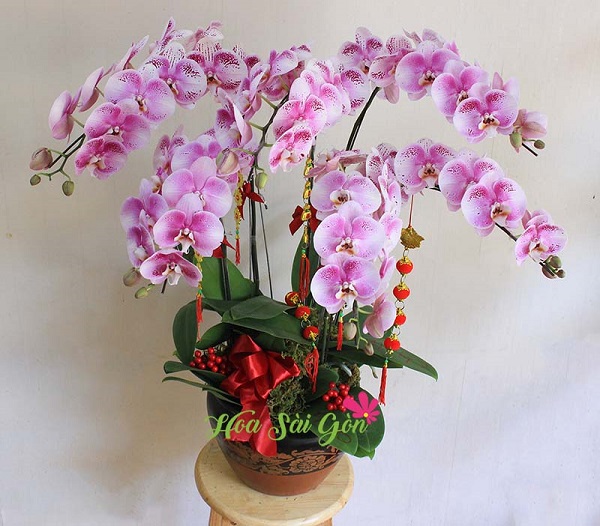 Phú quý tài lộc chính là mẫu hoa ấn tượng của mùa Tết năm nay mà Hoa Sài Gòn muốn gửi đến bạn nhân dịp năm mới đến. Với 5 nhành lan hồ điệp hồng được trang trí trong chậu sứ cao cấp cùng các phụ kiện xinh xắn sẽ là lời cầu chúc nồng ấm về một năm mới phú quý tài lộc cho gia chủ. Hơn nữa, chậu lan hồ điệp xinh tươi này còn độc đáo ở chỗ trên mỗi cánh hoa tươi được in chữ giúp bạn gửi gắm những tình cảm chân thành.