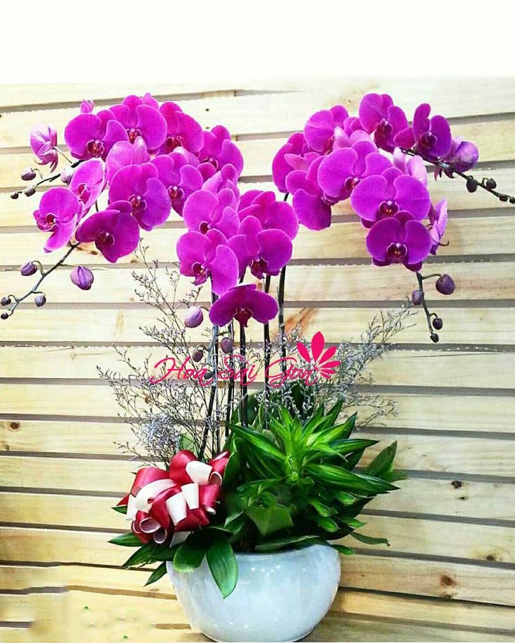 Hoa Sài Gòn xin giới thiệu đến quý khách hàng một món quà tuyệt vời đó chính là Chậu lan hồ điệp tím 5 cành Thời khắc huy hoàng vô cùng thanh tao và sang trọng. Tặng chậu lan hồ điệp chính là lời chúc cho gia chủ luôn gặp nhiều may mắn, thành công cũng như hạnh phúc trong công việc làm ăn và cuộc sống.