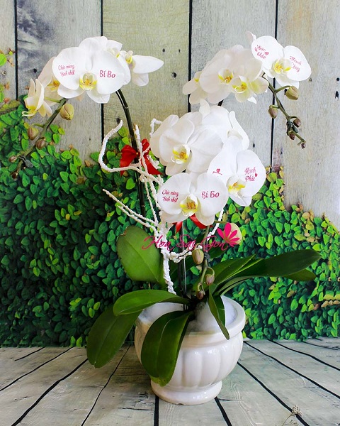 Nhờ công nghệ hoa in chữ đặc sắc trên cánh lan hồ điệp tại Hoa Sài Gòn còn giúp cho món quà này trở nên ý nghĩa và tinh tế hơn rất nhiều. Chúng ta có thể dành chậu hoa Tinh khiết cho những người thân yêu bên cạnh!